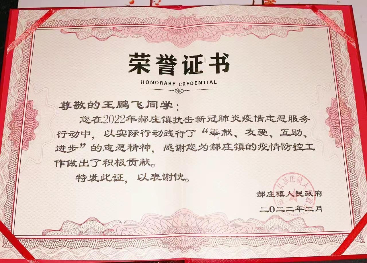 在众志成城的抗疫战里,我校交通运输系王鹏飞同学在做好自身防护的同时,积极投入到家乡的疫情防控工作中,为了早日取得抗疫胜利,他坚守在疫情防控一线,他勇于奉献、舍己为人、敢于逆行而上,用实际行动践行了“奉献、友爱、互助、进步”的志愿精神!寒冬终将过去,春天总会到来,向王鹏飞同学致敬!