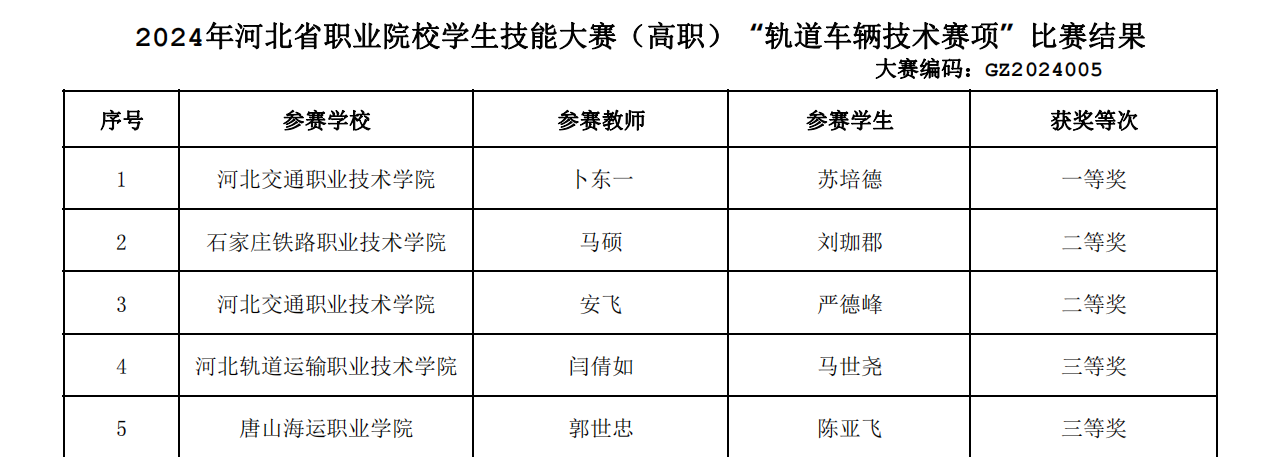 3月30日至31日,由河北省教育厅主办,河北省交通职业教育集团 、友道科技有限公司协办的2024年河北省职业院校技能大赛(高职组)轨道车辆技术赛项在河北交通职业技术学院举行。唐山海运职业学院师生斩获三等奖。