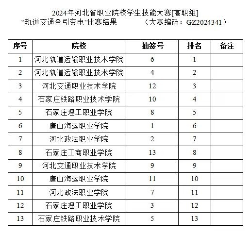 2024年4月27日,由河北省教育厅主办,河北省交通职业教育集团、河北轨道运输职业技术学院和株洲场合电力机车科技有限公司协办的河北省职业院校技能大赛轨道交通牵引变电赛项,在河北轨道运输职业技术学院举办进行。唐山海运职业学院交通运输学院变电一队在该赛中喜获三等奖。