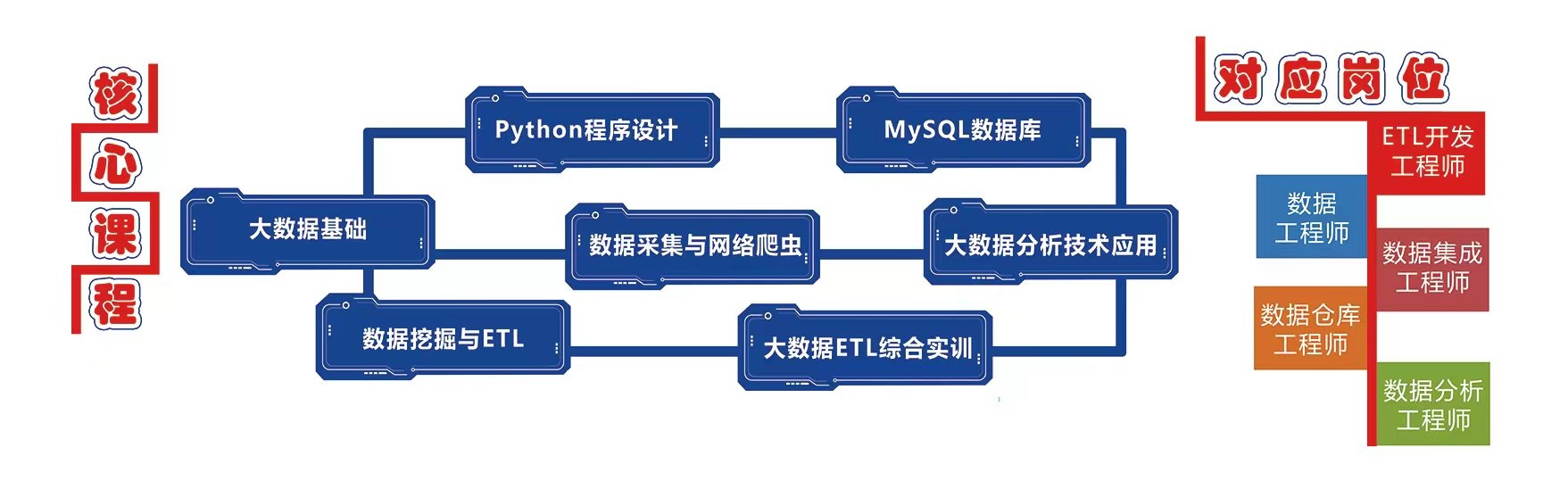 跨体系融合:开设开设“大数据+运维”“大数据+ETL”微专业。采用“理论 + 实践 + 创新”的三元融合人才培养模式。理论教学注重基础知识与前沿技术的结合,实践教学通过企业项目实训、实习基地锻炼等方式,增强学生的实际操作能力。同时,设立创新创业课程和实践项目,鼓励学生参与大数据相关的创新创业竞赛,培养学生的创新意识和创业能力。