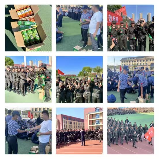 军训期间,公司也会为在烈日炎炎下军训的同学们进行解暑降温物资的发放,如冰镇饮料、雪糕、藿香正气水等。同时,也为同学们准备了急救药品,如创可贴、云南白药气雾剂、救心丸、花露水、红花油、感冒药、退烧药、金嗓子喉宝等等。