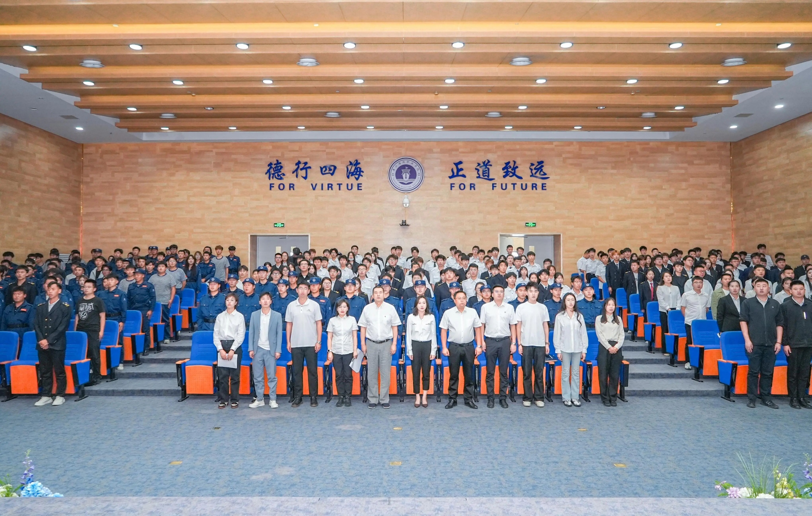 校卫队队长王泽轶发言结束后,带领全体队员庄严宣誓:“严守纪律,不越权不徇私;预防为先,守护师生安全;甘于奉献,共建文明校园!”誓言铿锵有力,回荡在报告厅内,展现出校卫队队员守护校园的坚定决心。