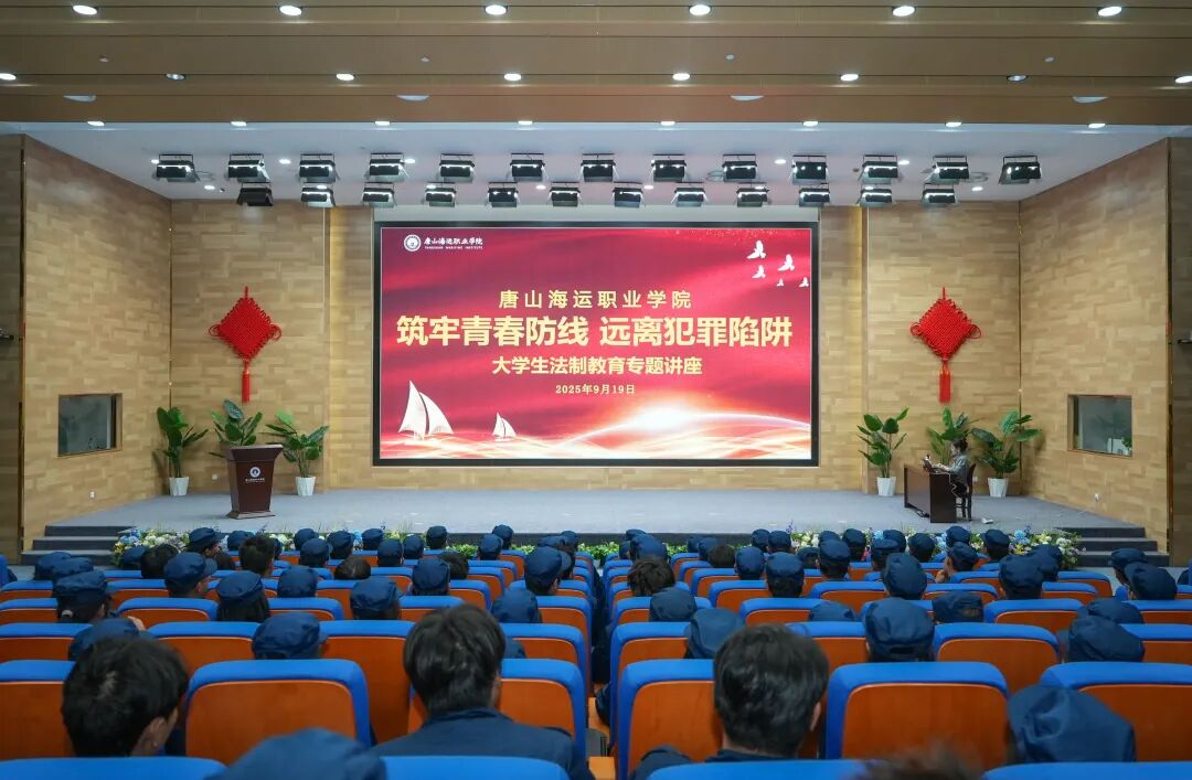 为进一步增强大学生的法治观念和安全防范意识,引导青年学生树立正确的价值观,筑牢平安校园的坚实基础,9月19日,唐山海运职业学院学生工作处与资产处携手,在学术报告厅开展了一场以“筑牢青春防线,远离犯罪陷阱”为主题的法制教育专题讲座。