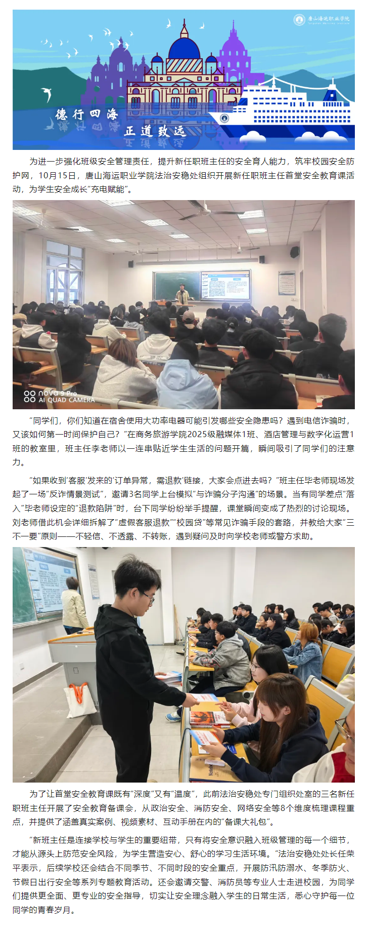【校园时讯】唐山海运职业学院新任职班主任首堂安全教育课温情开讲