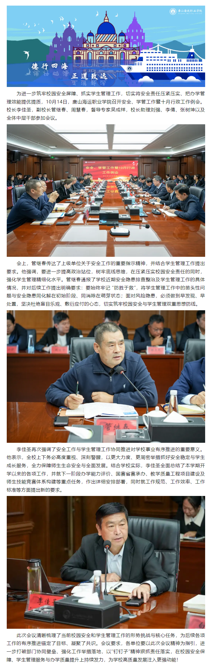 【校园时讯】唐山海运职业学院召开安全、学管工作暨十月行政工作例会
